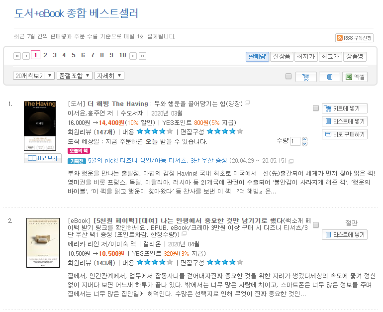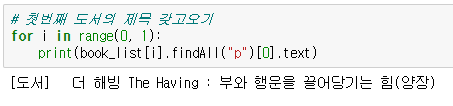 root_url = "http://www.yes24.com/24/category/bestseller?CategoryNumber=117&sumgb=06"