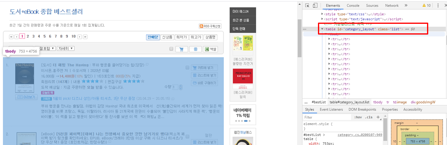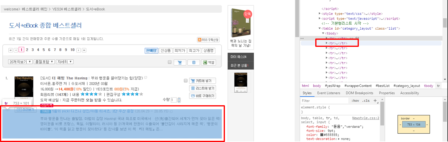 | [python] 웹 크롤러(Web crawler) 실습-02_도서 목록 가져오기 (0) | 2020.05.04 |