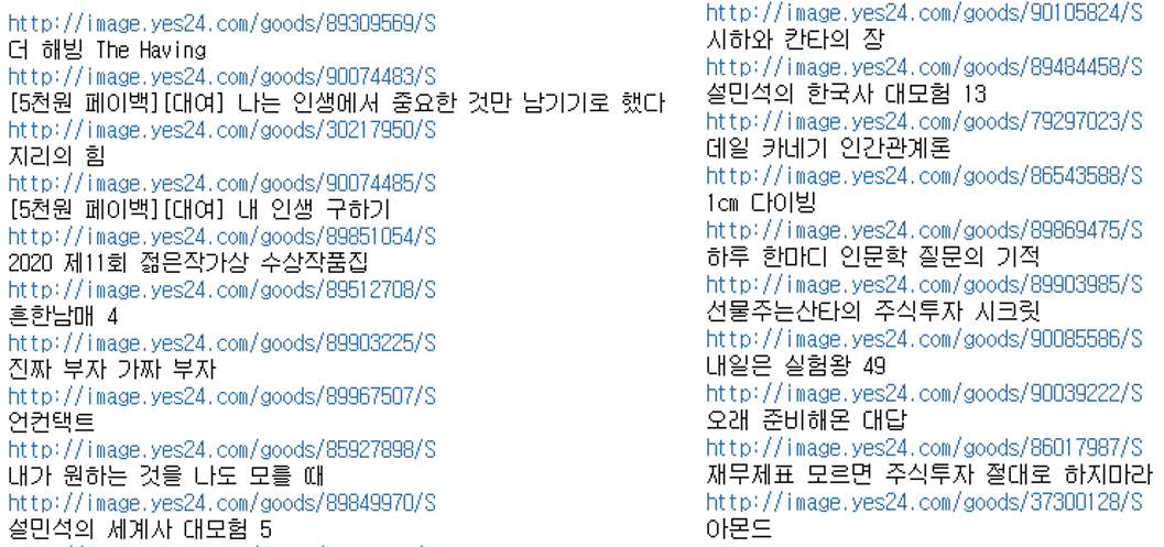 아래 소스코드는 도서 이미지를 다운로드하는 소스코드입니다.